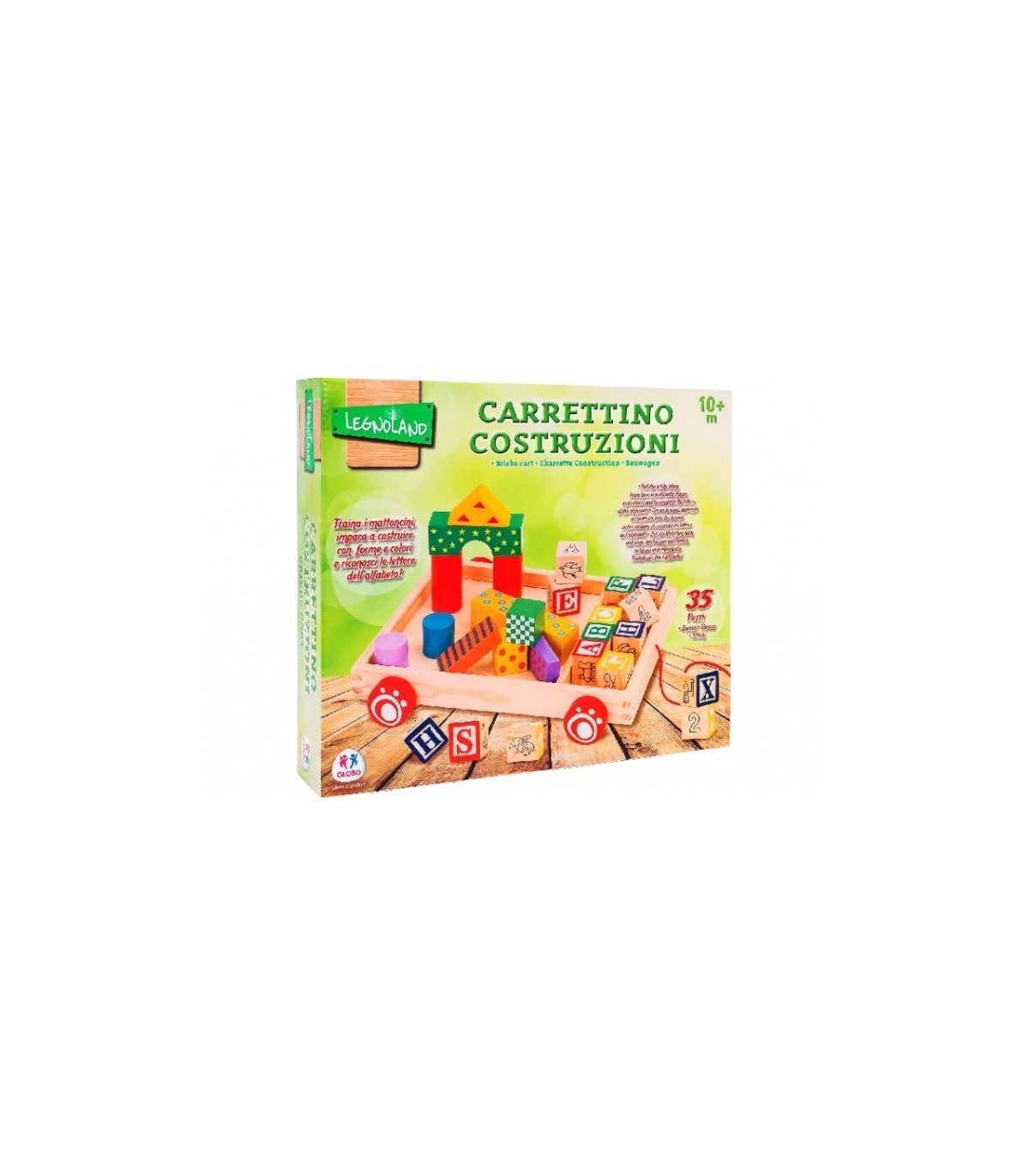 PULL ALONG WOODEN CART 12 CUBES